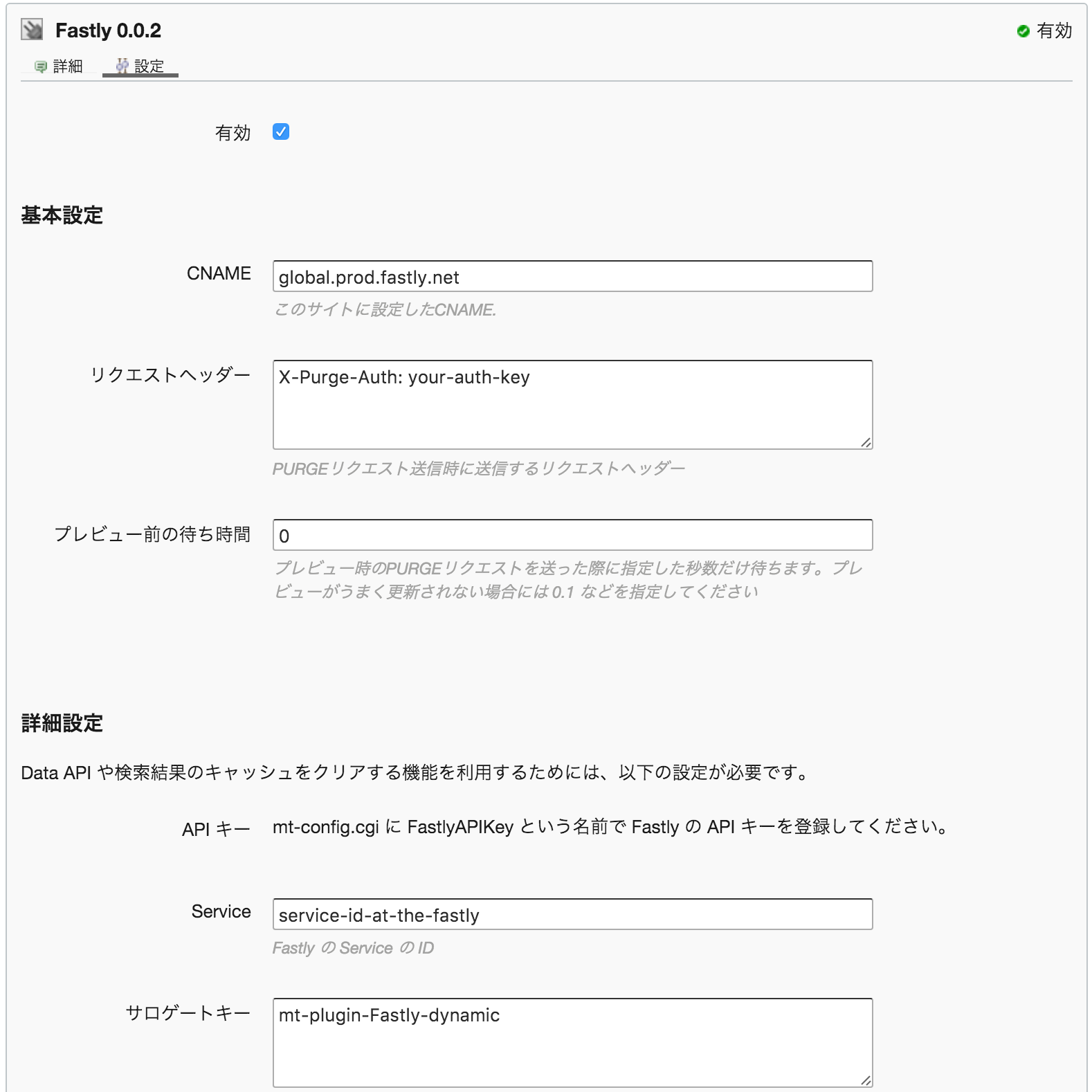 Data API や検索結果のキャッシュをクリアする場合には、Fastly の API キー等を設定する必要があります。